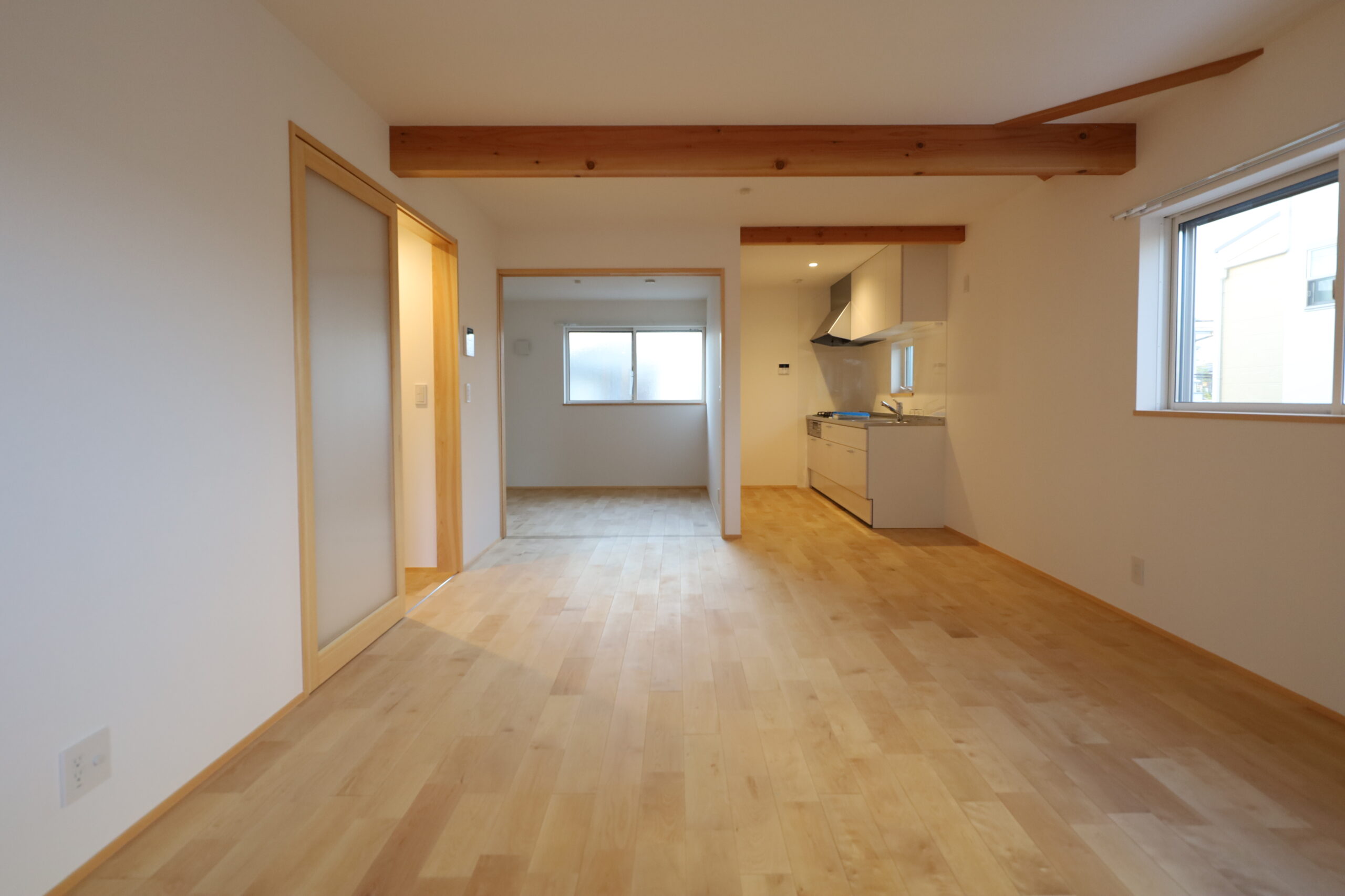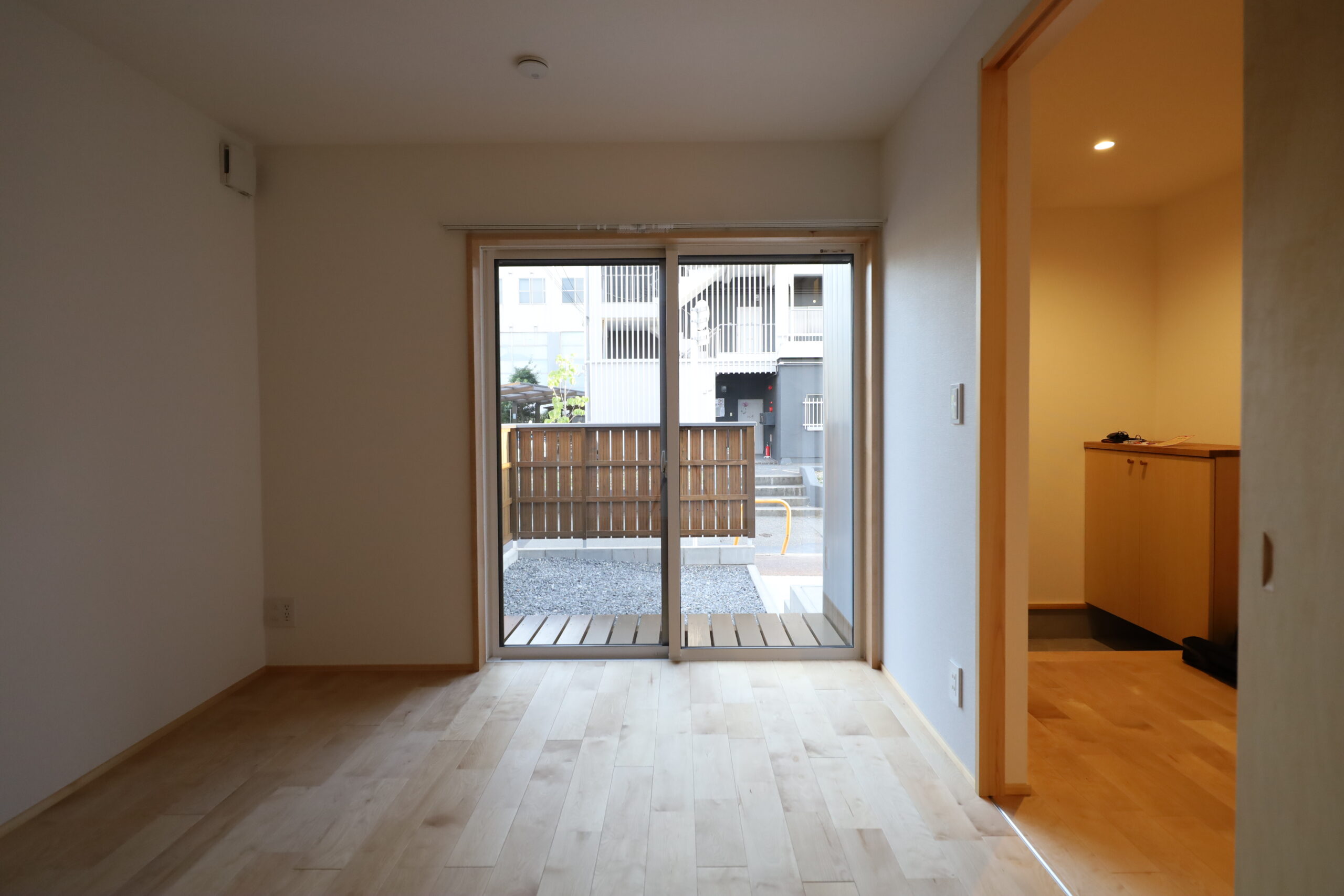 連棟になっているが、界壁部分の柱、梁を2重にして断熱と壁面も2重にしているため、隣家の音は聞こえない。