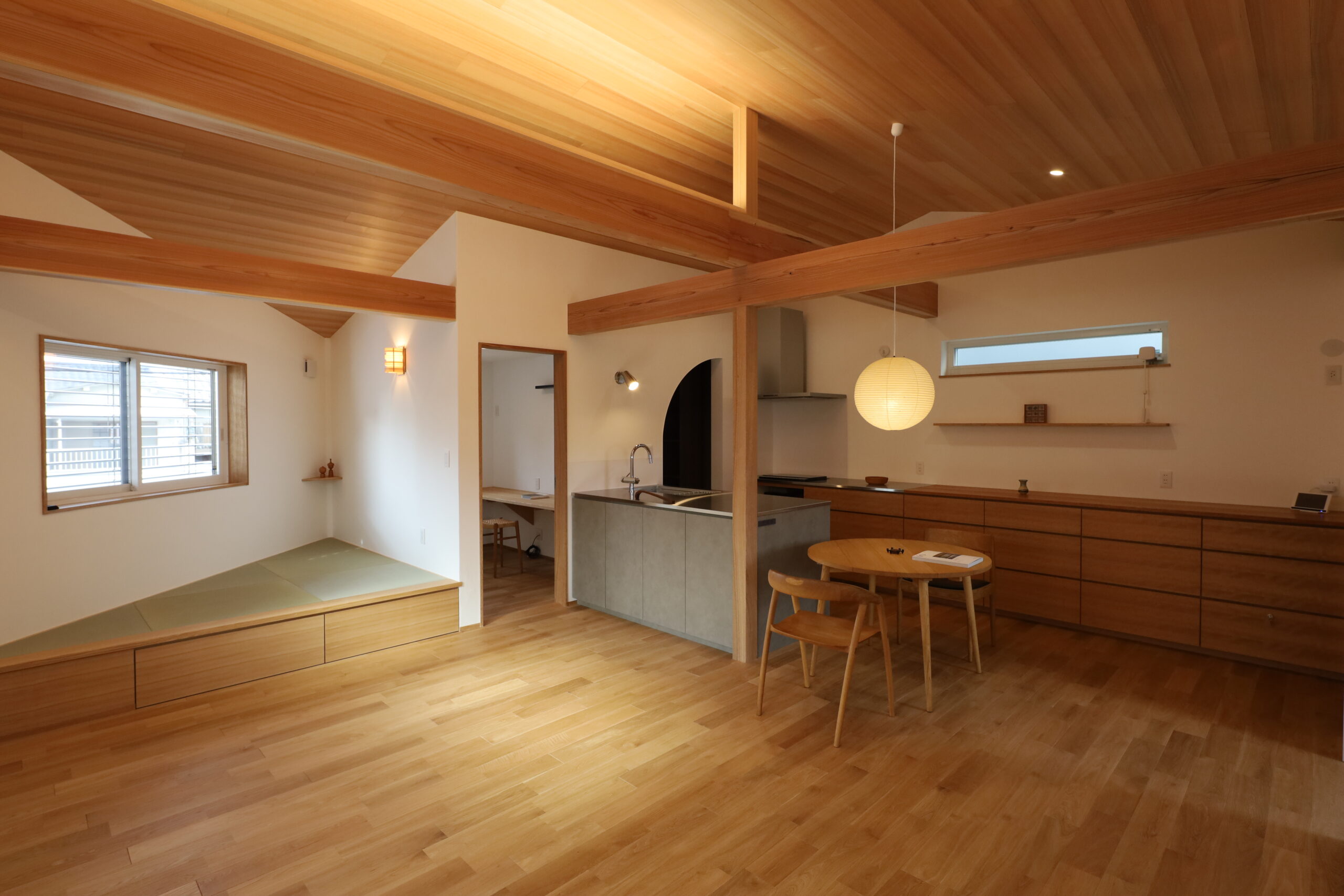畳の小上がりに腰掛けて一体感のあるリビングとしても利用できる