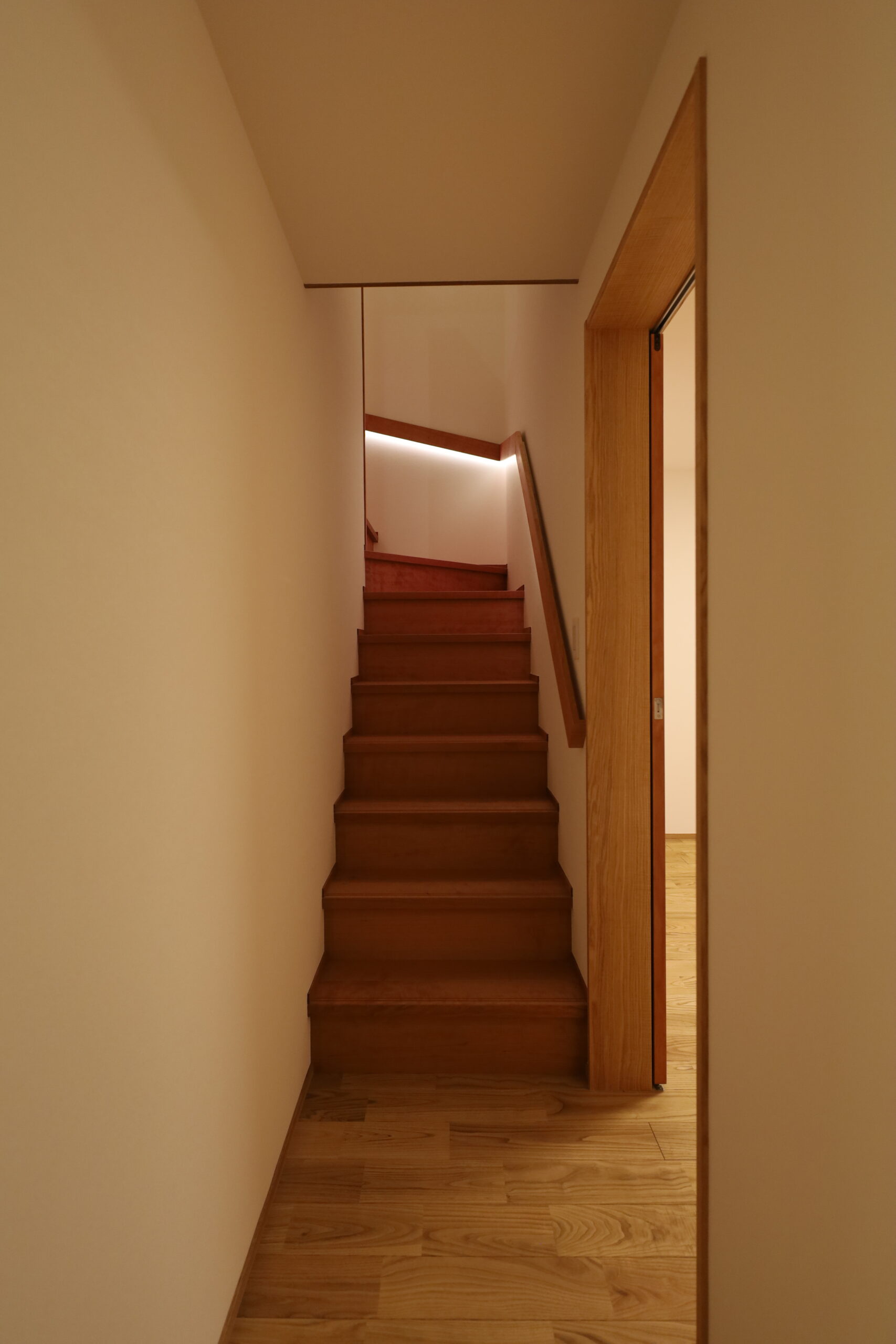 階段手摺下に照明