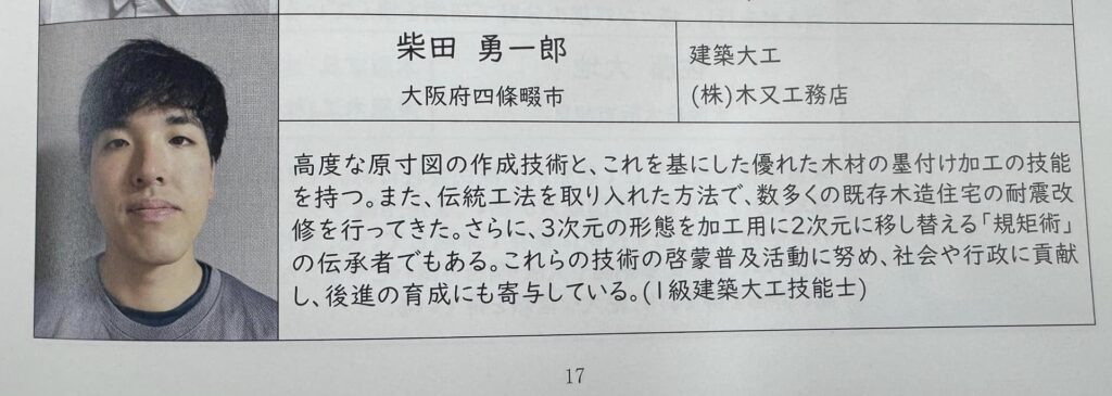 弟子の柴田勇一郎大工が「なにわの名工若葉賞」を受賞しました!